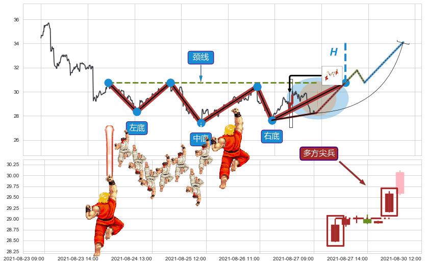 ➢ 图示②④⑥三个波谷均在 30.76 附近成功获得【支撑】→反弹上涨