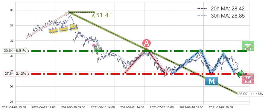 ♘ 阻力价格位30.64,可信任强度88.35%,距离最后交易2021-09-09 15:00形成的收盘价格28.24相差 +8.51%