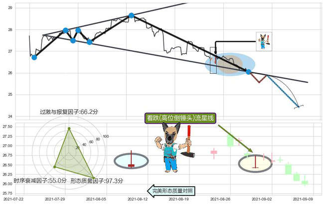 ➢ 🕰 价格走势在2021-08-31 00:00:00至2021-08-31 00:00:00期间形成看跌(高位倒锤头)流星线,残存影响值:-6.59