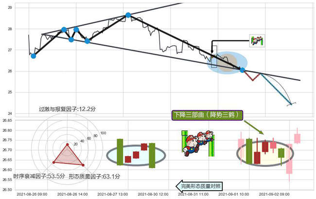 ➢ 🕰 价格走势在2021-09-01 10:00:00至2021-09-01 14:00:00期间形成下降三部曲(降势三鹤),残存影响值:-3.04
