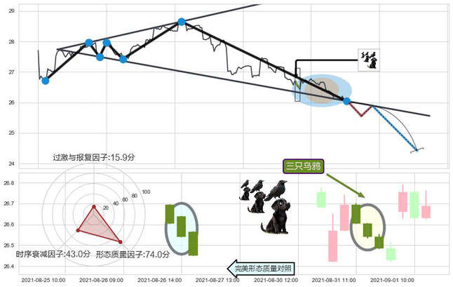 ➢ 🕰 价格走势在2021-08-31 11:00:00至2021-08-31 13:00:00期间形成三只乌鸦,残存影响值:-1.29