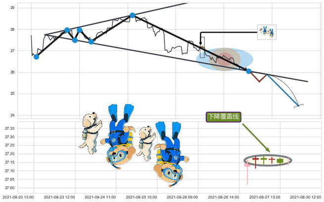 ➢ 🕰 价格走势在2021-08-27 10:00:00至2021-08-27 13:00:00期间形成下降覆盖线,残存影响值:-0.83