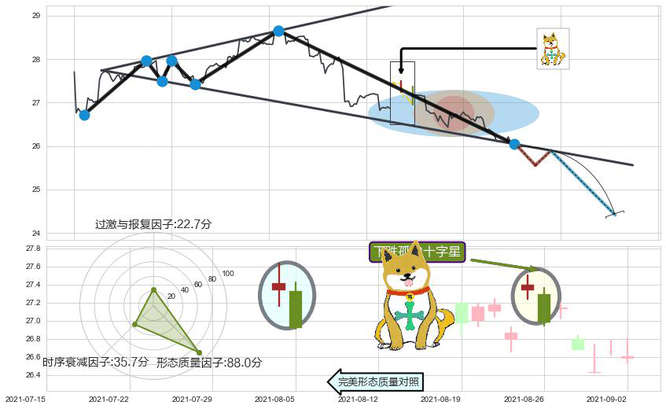 ➢ 下跌孤独十字星 🔜 扩散三角反转支撑破位转换阻力下跌 综合量化分数:45.91 【偏空】