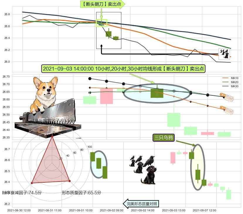 | 4 🅚:【断头铡刀】卖出点 ➕ 📐:扩散三角反转下行突破支撑位破位, 猜想持续下沉下跌,被突破的支撑位已变为阻力位 ☞ 看空信号 ⇥ 【均线】交织【图形】⇥ 综合量化分数: 32 | > |