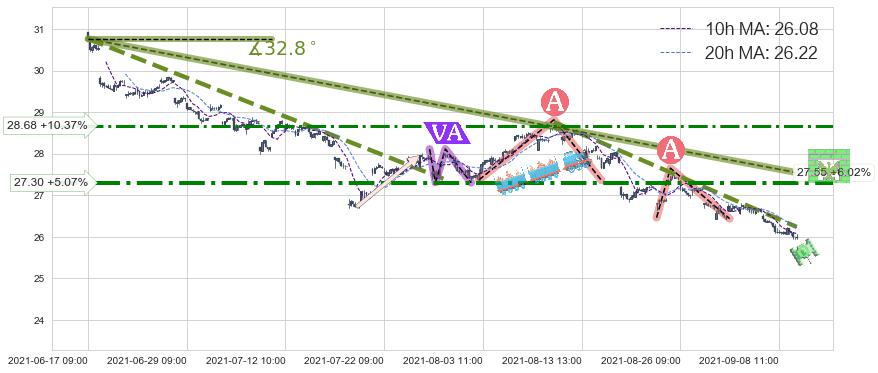 ♘ 阻力价格位27.30,可信任强度83.25%,距离最后交易2021-09-09 14:00形成的收盘价格25.98相差 +5.07%
