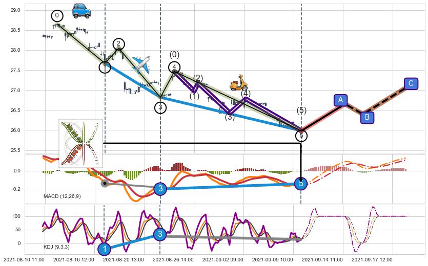 | 2 🅚:下探上涨 ➕ 🌊:波浪理论猜想下跌浪5已形成,猜想后续形成abc反弹上涨(均值回复) ☞ 看多信号 ⇥ 【🅚线】交织【图形】⇥ 综合量化分数: 52 | > |