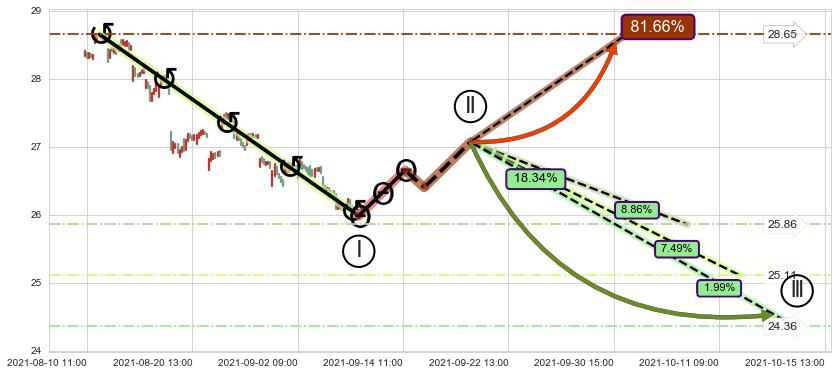 ➣ 预测:2021-09-13 09:00,【继续下探】稳定目前下跌趋势的前提下,预测价格:25.58