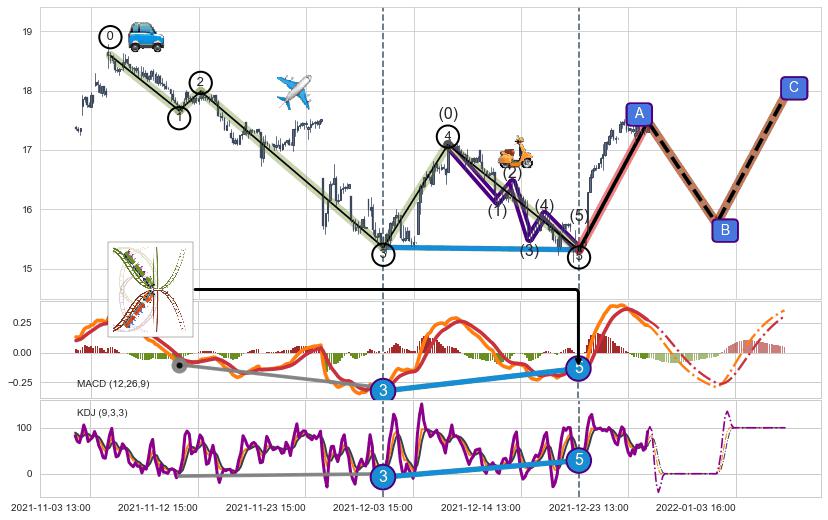 | 6 🅚:【高山滑雪】买入点 ➕ 🌊:波浪理论猜想下跌浪5已形成,猜想后续形成abc反弹上涨(均值回复) ☞ 看多信号 ⇥ 【均线】交织【图形】⇥ 综合量化分数: 67 | > |