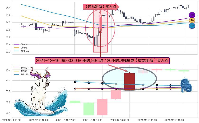 形态多维评估: ⚀ 2021-12-16 09:00:00小时显现 60小时-90小时-120小时均线 【蛟龙出海】买入点 看多信号,后市看涨,买入