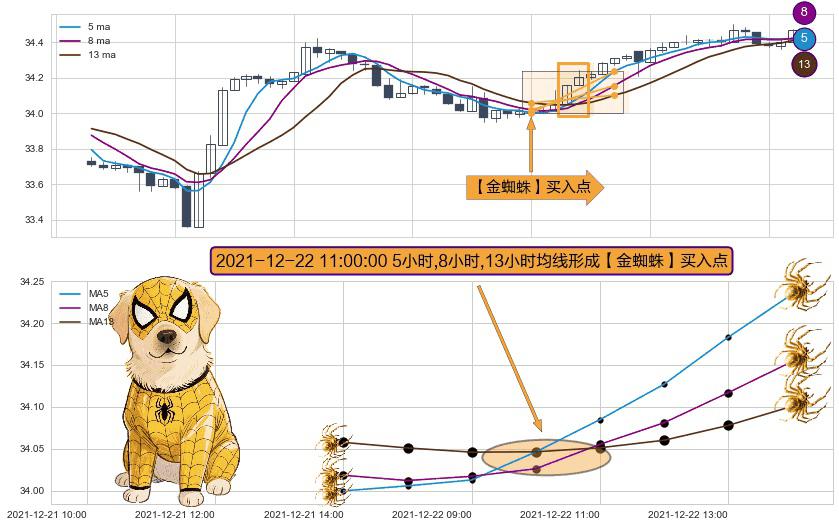 形态多维评估: ⚀ 2021-12-22 11:00:00小时显现 5小时-8小时-13小时均线 【金蜘蛛】买入点 看多信号,后市看涨,买入