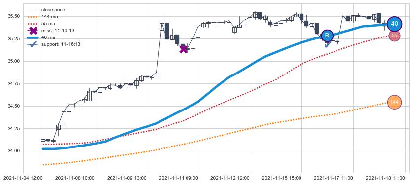 ⚄ 价格在均线获取支撑后再次向上反弹了【极短】距离, 第②买入点 支撑效果【等待验证】