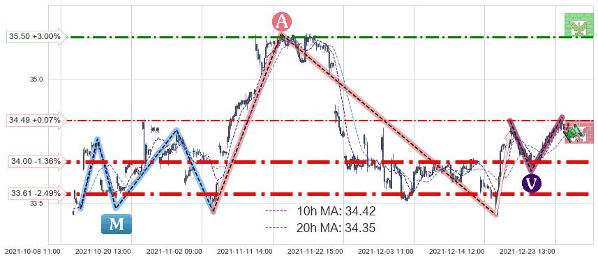 ♘ 阻力价格位35.50,可信任强度57.74%,距离最后交易2021-12-27 15:00形成的收盘价格34.47相差 +3.00%