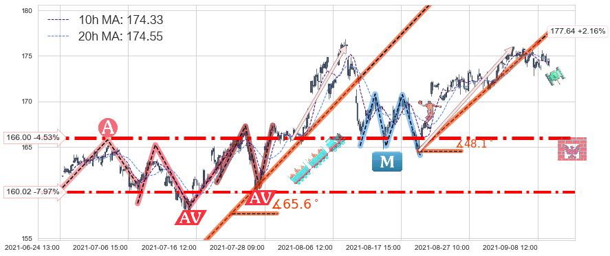 ➣ D点拟合预测价格171.80,距离最后交易收盘价格173.88相差 -1.20%
