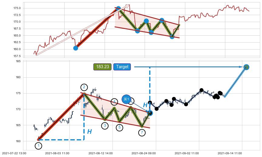 ➣ AI预测: 假定反转启动后, 第❶目标位置(09-20:09, 173.41)