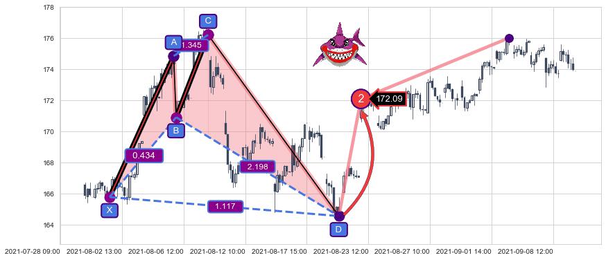 ➣ 已完成【鲨鱼】形态起点X: 07-30:15, 终点D: 08-19:14, 共94交易小时