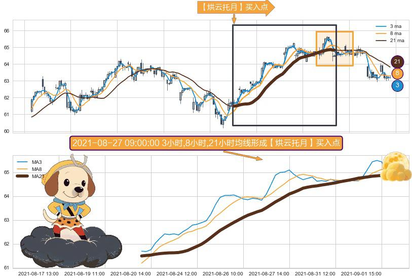 形态多维评估: ⚀ 2021-08-20 12:00:00小时-2021-09-02 10:00:00小时显现 3小时-8小时-21小时均线 【烘云托月】买入点 看多信号,后市看涨,买入