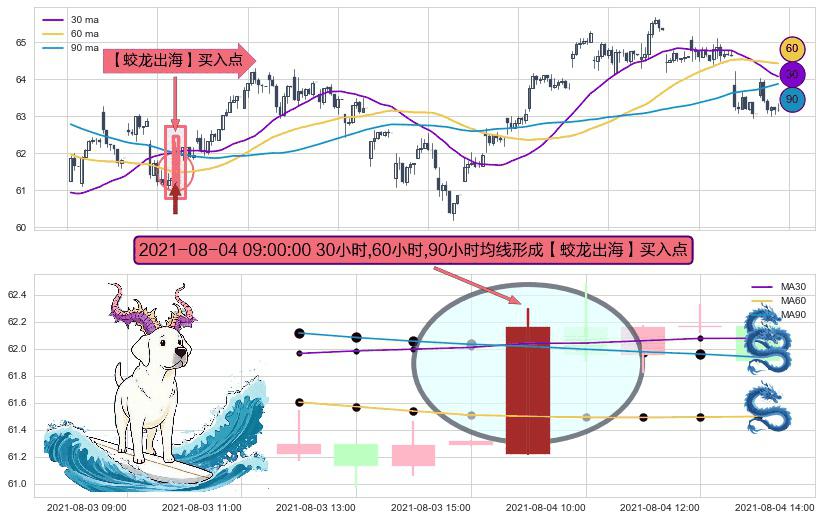 ⚃ 2021-08-04 09:00:00小时开盘价格在三条均线下收大阳线,收盘全突破均线,收盘股价上涨1.37%