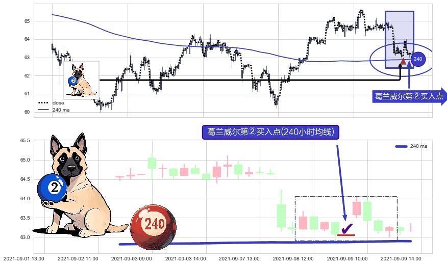 形态多维评估: ⚀ 2021-09-08 15:00:00-小时显现 葛兰威尔均线 240小时均线 第②买入点 上升趋势的中继信号,后市看涨,买进信号