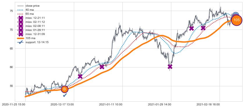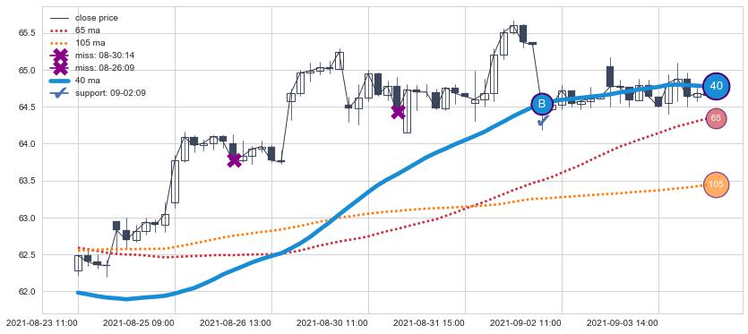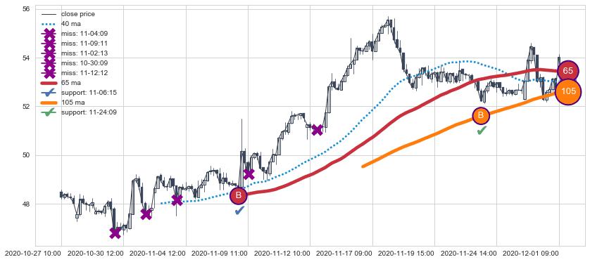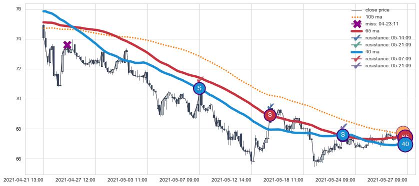 下跌趋势04-21 13:00-05-27 09:00,均线40, 65确认关键阻力3处