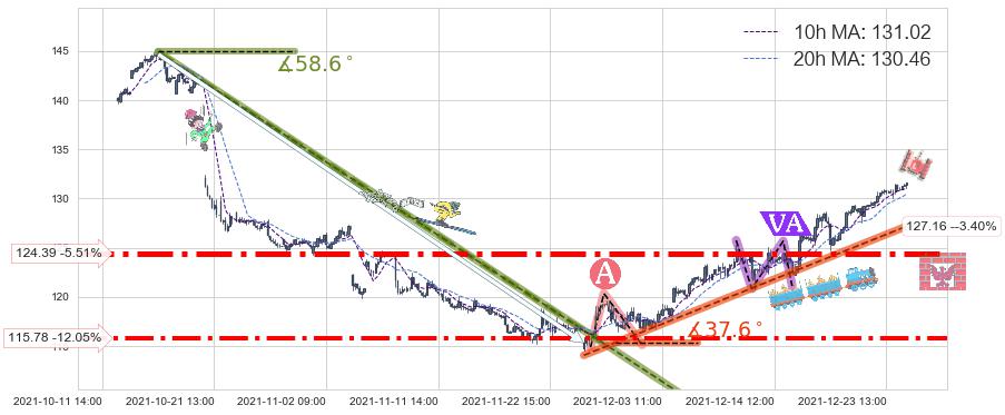 ♘ 支撑价格位124.39,可信任强度86.64%,距离最后交易2021-12-27 15:00形成的收盘价格131.64相差 -5.51%