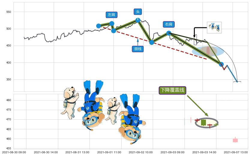 | 4 🅚:下跌两颗星 | 下跌三颗星 ➕ 📐:头肩顶猜想突破点临近,临近关键支撑位,预期下沉突破下跌 ☞ 看空信号 ⇥ 【🅚线】交织【图形】⇥ 综合量化分数: 38 | > |