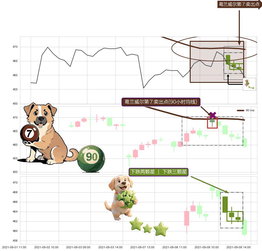➢ 收盘价(09-01:09: 467.11 )→再次回踩→第一根k线低点(08-30:14: 456.35 )
