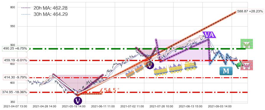 ♘ 阻力价格位490.25,可信任强度88.55%,距离最后交易2021-09-09 14:00形成的收盘价格459.25相差 +6.75%
