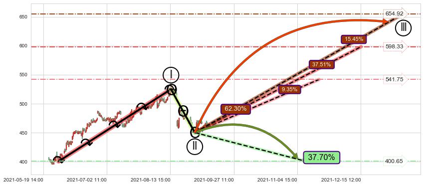 ➣ 循环浪继续向上【平均值】位置(12-15:13, 598.33),匹配聚类样本比例60.21%, 可能性概率37.51%