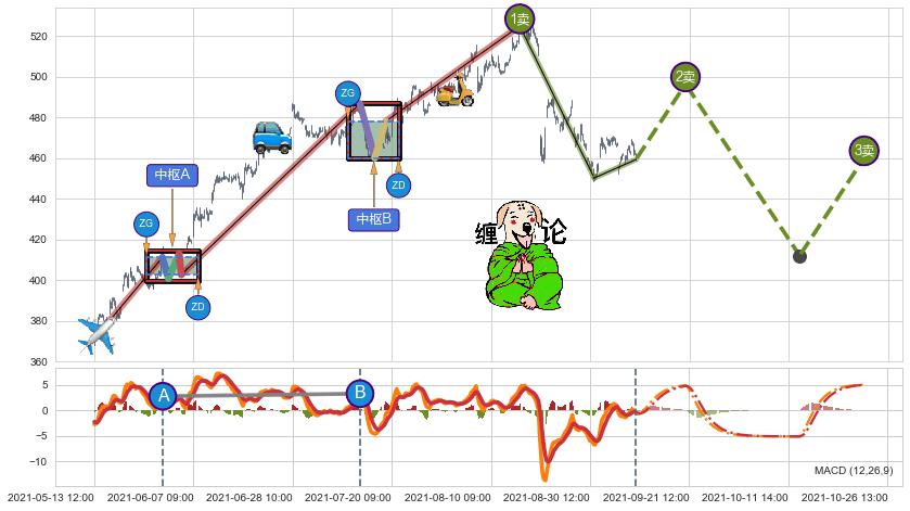 ➣ 【已完成】缠论 起点:05-13:12,完成第1中枢A,完成第2中枢B,终点:08-16:10,缠论共547交易小时