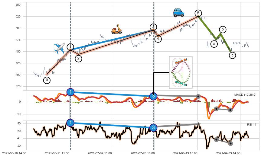 ➢ a,c调整浪MACD, RSI, KDJ走势都【未出现】背离,abc走势延续, 5浪反转概率增强