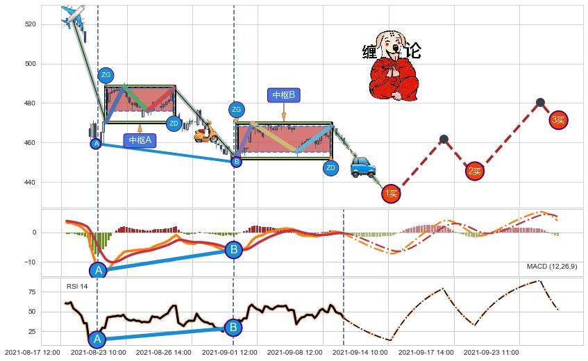 ➣ 【未完成】缠论 起点:08-18:09, 完成第1中枢A,完成第2中枢B,到达09-09:14