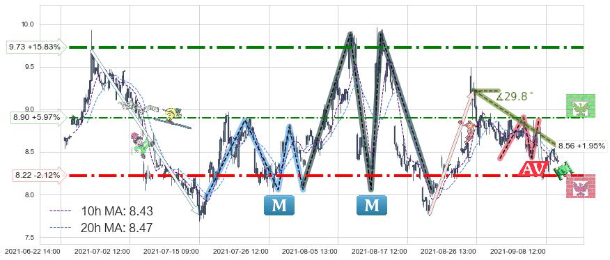 ♘ 阻力价格位8.90,可信任强度50.75%,距离最后交易2021-09-09 15:00形成的收盘价格8.40相差 +5.97%