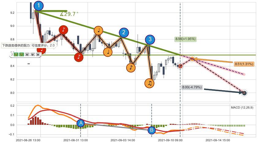➢ 预测:2021-09-10 13:00,【小幅反弹】稳定目前下跌趋势的前提下,预测价格:8.51