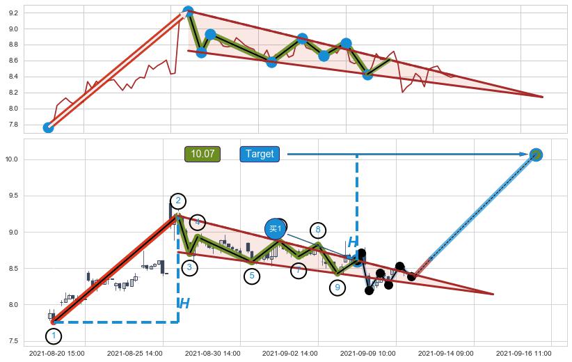 ➢ 【买1】: 激进型 买点 →(09-07:12: 8.61 )形成突破降🚩楔型【整理】形态
