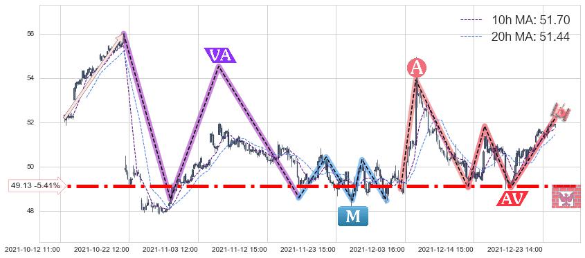 2021-12-20: 第一支撑位49.13有效抑制了下跌浪,成功阻止了价格的继续下跌。