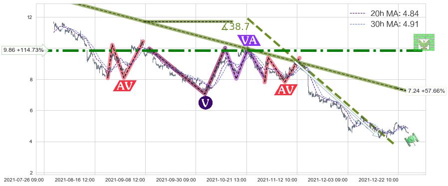 ♘ 阻力价格位9.86,可信任强度85.06%,距离最后交易2021-12-27 15:00形成的收盘价格4.59相差 +114.73%