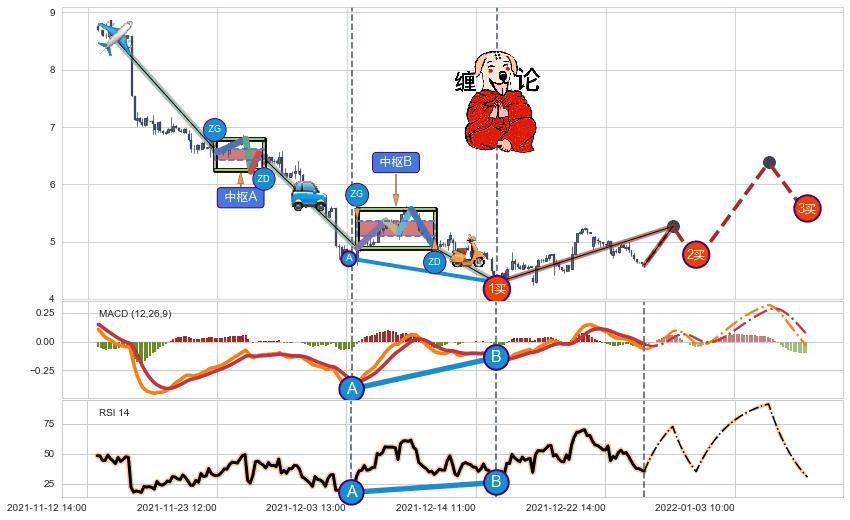 ➣ 【已完成】缠论 起点:11-16:09,完成第1中枢A,完成第2中枢B,终点:12-15:11,缠论共207交易小时