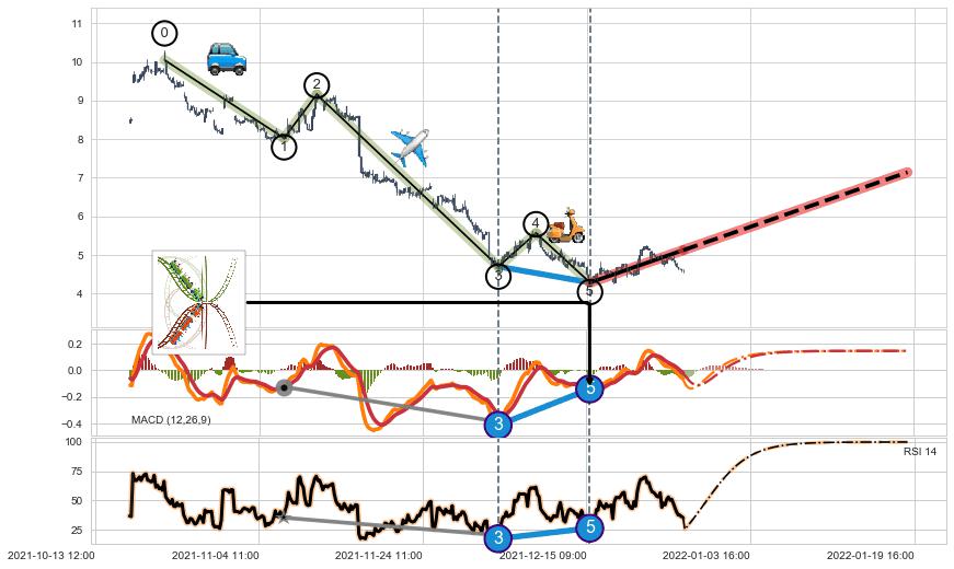 | 5 🅚:上涨两颗星 | 上涨三颗星 ➕ 🌊:波浪理论猜想下跌浪5已形成,猜想后续形成abc反弹上涨(均值回复) ☞ 看多信号 ⇥ 【🅚线】交织【图形】⇥ 综合量化分数: 55 | > |