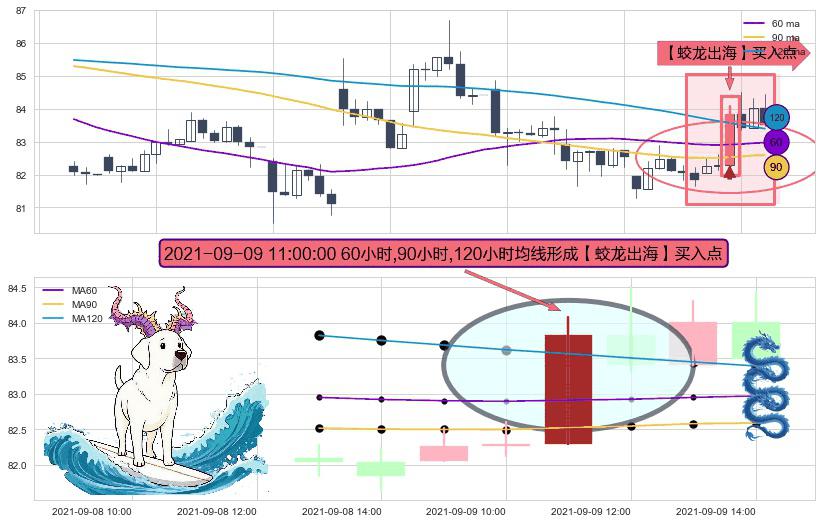 ⚀ 2021-09-09 11:00:00小时显现 60小时-90小时-120小时均线 【蛟龙出海】买入点 看多信号,后市看涨,买入