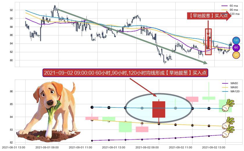 ⚀ 2021-09-02 09:00:00小时显现 60小时-90小时-120小时均线 【旱地拔葱】买入点 看多信号,后市看涨,买入