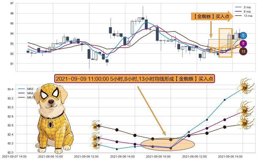 ⚀ 2021-09-09 11:00:00小时显现 5小时-8小时-13小时均线 【金蜘蛛】买入点 看多信号,后市看涨,买入