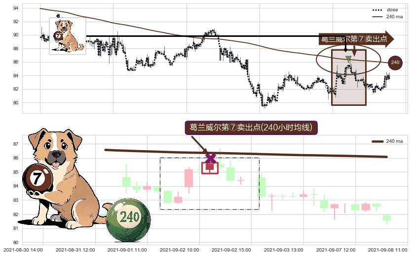 ⚀ 2021-09-02 11:00:00-小时显现 葛兰威尔均线 240小时均线 第⑦卖出点 下降趋势的中继信号,后市看跌,卖出信号
