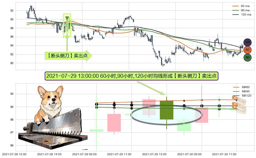 ⚀ 2021-07-29 13:00:00小时显现 60小时-90小时-120小时均线 【断头铡刀】卖出点 看空信号,后市看跌,卖出