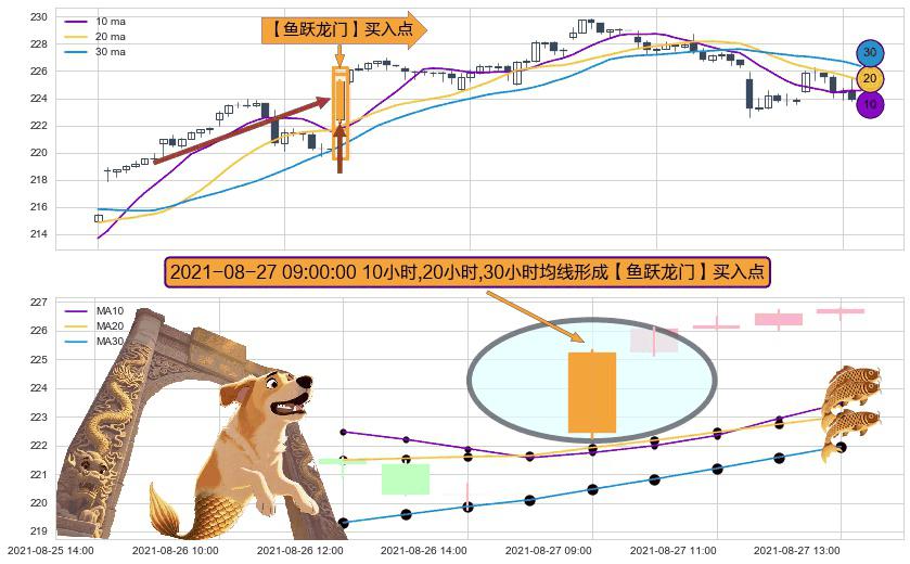 ⚀ 2021-08-27 09:00:00小时显现 10小时-20小时-30小时均线 【鱼跃龙门】买入点 看多信号,后市看涨,买入