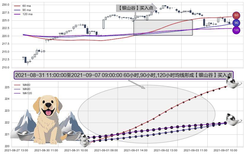 ⚀ 2021-08-31 12:00:00-小时至2021-09-07 09:00:00-小时显现 60小时-90小时-120小时均线 【银山谷】买入点 看多信号,后市看涨,买入