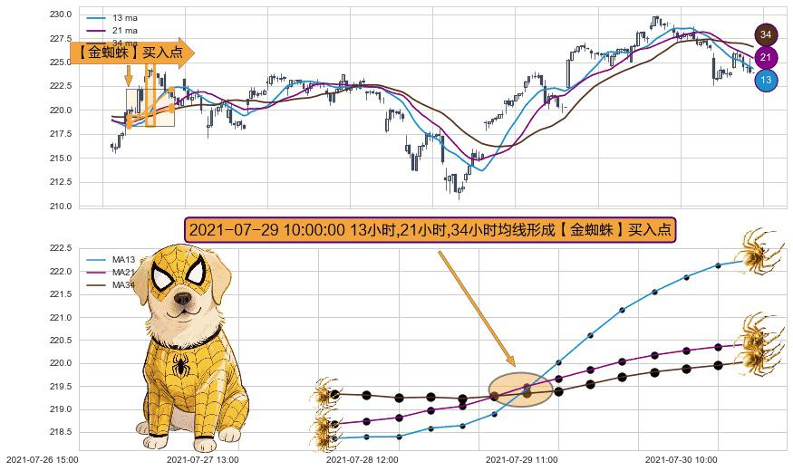 ⚀ 2021-07-29 10:00:00小时显现 13小时-21小时-34小时均线 【金蜘蛛】买入点 看多信号,后市看涨,买入
