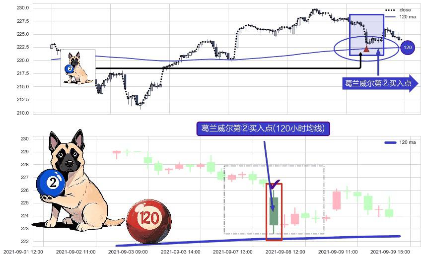 ⚀ 2021-09-08 09:00:00-小时显现 葛兰威尔均线 120小时均线 第②买入点 上升趋势的中继信号,后市看涨,买进信号