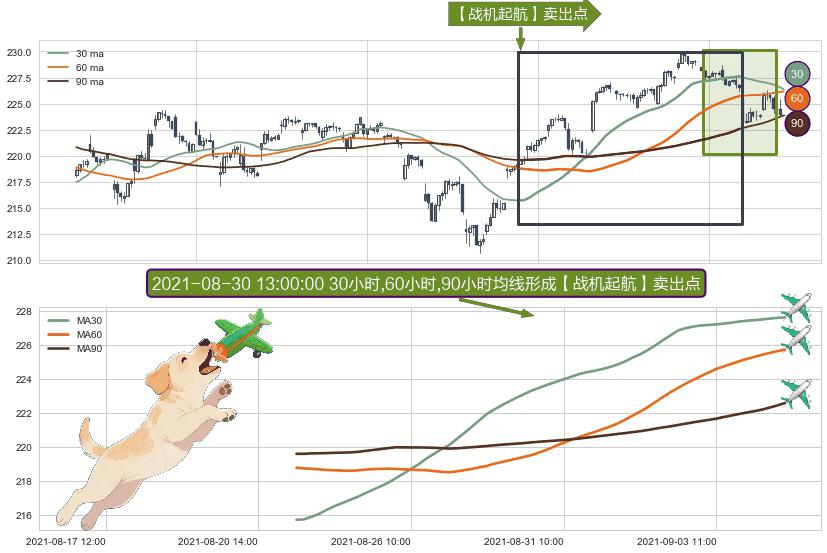 ⚀ 2021-08-23 13:00:00小时-2021-09-07 14:00:00小时显现 30小时-60小时-90小时均线 【战机起航】卖出点 看空信号,后市看跌,卖出