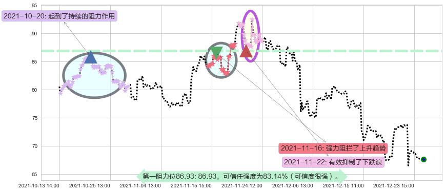 ♘ 阻力价格位86.93,可信任强度83.14%,距离最后交易2021-12-27 16:00形成的收盘价格67.71相差 +28.39%