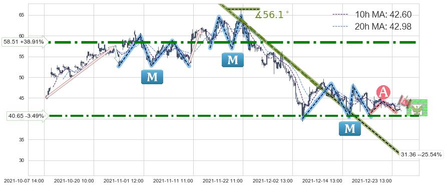 ♘ 阻力价格位40.65,可信任强度71.29%,距离最后交易2021-12-27 15:00形成的收盘价格42.12相差 -3.49%